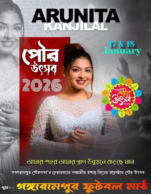 Arunita Kanjilal will perform live at Gangarampur Poura Utsab 2026